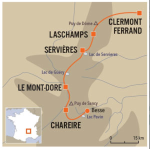 Pavin. Puis nous prendrons la descente pour aboutir le village de Besse-en-Chandesse, typique bourg médiéval resté quasi en l’état. Fin de la traversée à Besse. Transfert vers Clermont-Ferrand.